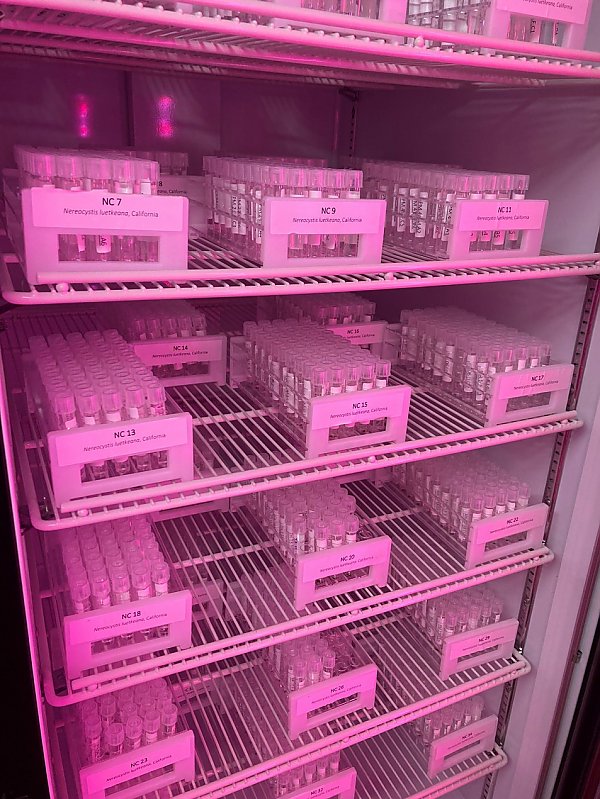 The project is focused on preserving genetic diversity of bull kelp to help facilitate future kelp forest restoration projects. Aquarium animal husbandry staff have been carefully preserving gametophytes or genetic material of bull kelp. These gametophytes are stored in stasis at the Aquarium of the Pacific and can be used to grow kelp for outplanting it in the ocean to help restore kelp forest ecosystems.