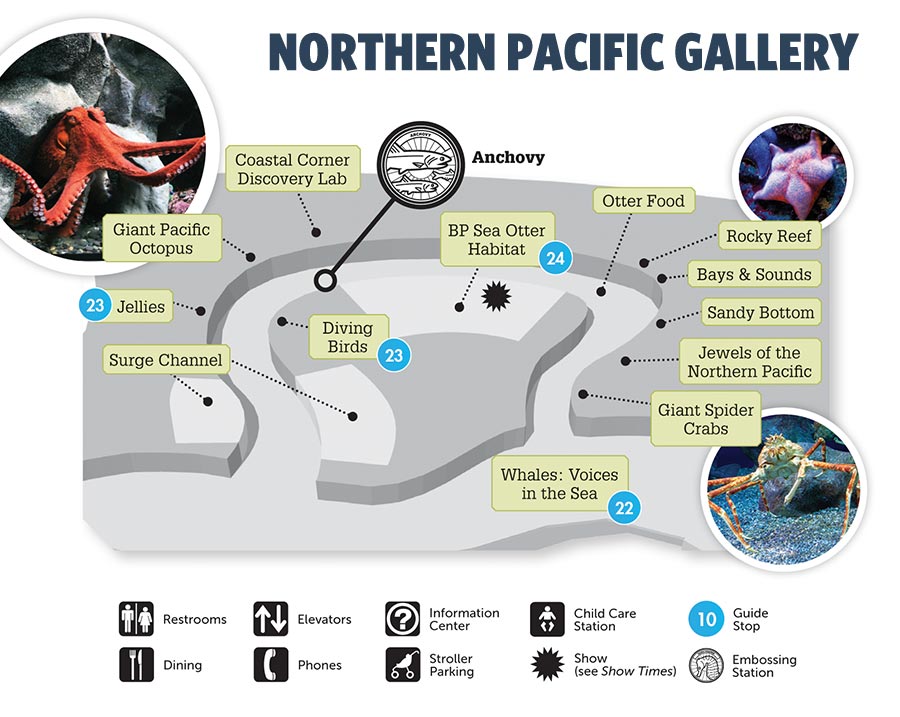 Home to the adorable otter and the mysterious giant Pacific octopus. The Aquarium’s Northern Pacific Gallery represents the northernmost region of the Pacific Ocean, specifically habitats in and around the Bering Sea.